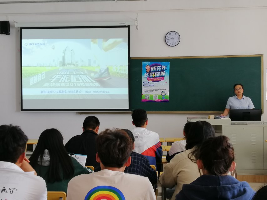 6月5日下午,新华人寿保险股份有限公司呼伦贝尔中心支公司专场校园招聘宣讲会在崇文楼305教室举行,参加本次活动的有新华保险公司人力资源部经理卢冬梅及pp电子游戏平台官网各年级学生代表。