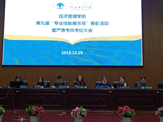 2019年12月19日,在图书馆四楼报告厅pp电子游戏平台官网举办“第九届专业技能展示月表彰活动暨严肃考风考纪大会”。经管学院院长李雪峰、副院长刘启云、王英利,各系主任、教研办主任、办公室主任、团学办公室主任及各位辅导员、班主任参加了大会,王英利副院长主持大会。