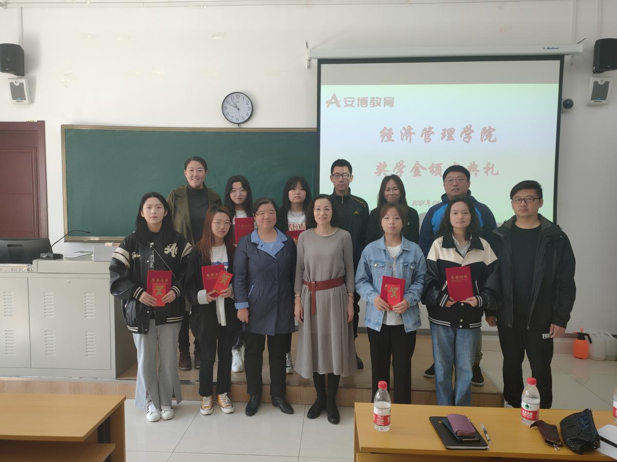 为了激励呼院学子勤学争先的热情,营造良好学习氛围。2021年5月8日上午,我院安博教育奖学金颁发典礼在崇文楼A208举行。pp电子游戏平台官网院长李雪峰、副院长刘启云、副院长王英利、市场营销系主任唐琦、学工办老师徐博宇以及pp电子游戏平台官网2018级、2019级市场营销专业学生参加此次颁奖典礼,现场座无虚席,气氛热烈。