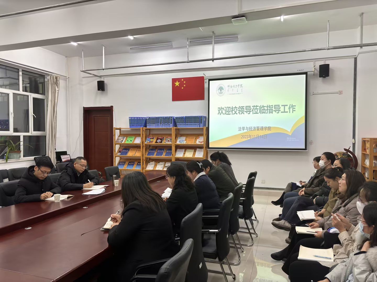 2023年11月14日下午,党委副书记、校长张玉柱到pp电子游戏平台官网就学院发展及各项工作开展调研指导,校党政办副主任孟繁宇陪同,pp电子游戏平台官网全体班子成员、环节干部及系主任参与调研座谈。