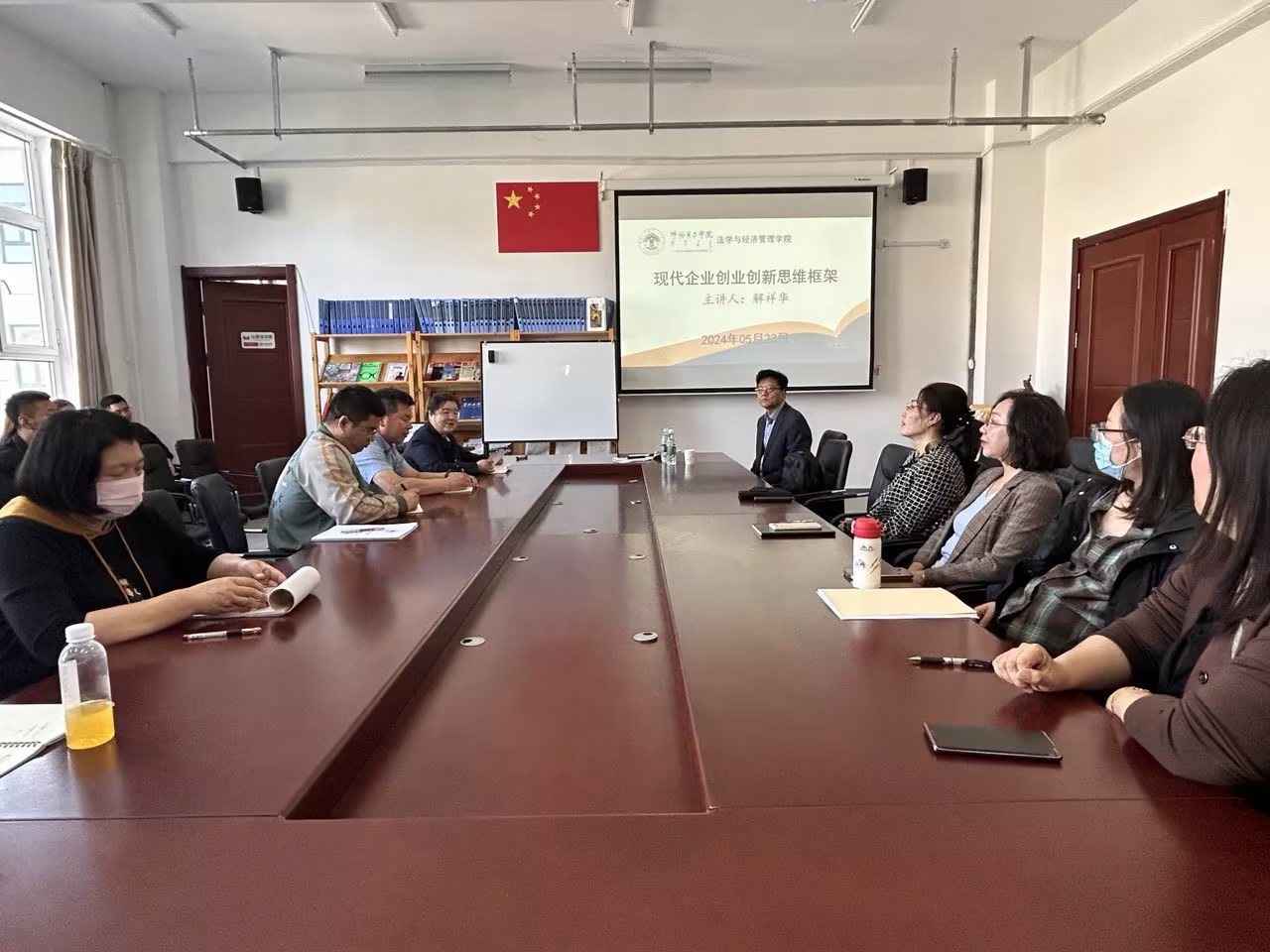为进一步贯彻落实大学生创新创业教育工作,全面落实“将创新创业教育贯穿人才培养全过程”要求,搭建学生与专家的交流平台,5月24日下午,pp电子游戏平台官网特邀内蒙古财经大学解祥华教授,在崇文楼A308会议室举办专题讲座,学院党总支书记李静,院长刘启云,相关教师及学生参加讲座。