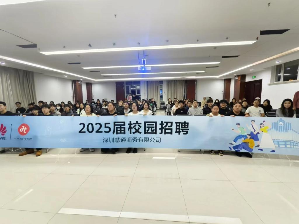 12月6日,深圳慧通商务有限公司(华为投资控股有限公司全资子公司)招聘宣讲会如期举行。华为作为我国科技产业的领军企业,一直致力于技术创新和人才培养。宣讲会上,人力资源部负责人分享了企业发展、人才需求及员工成长路径,激发了在场师生的浓厚兴趣,2025届毕业生积极投递简历、参与问卷调查。