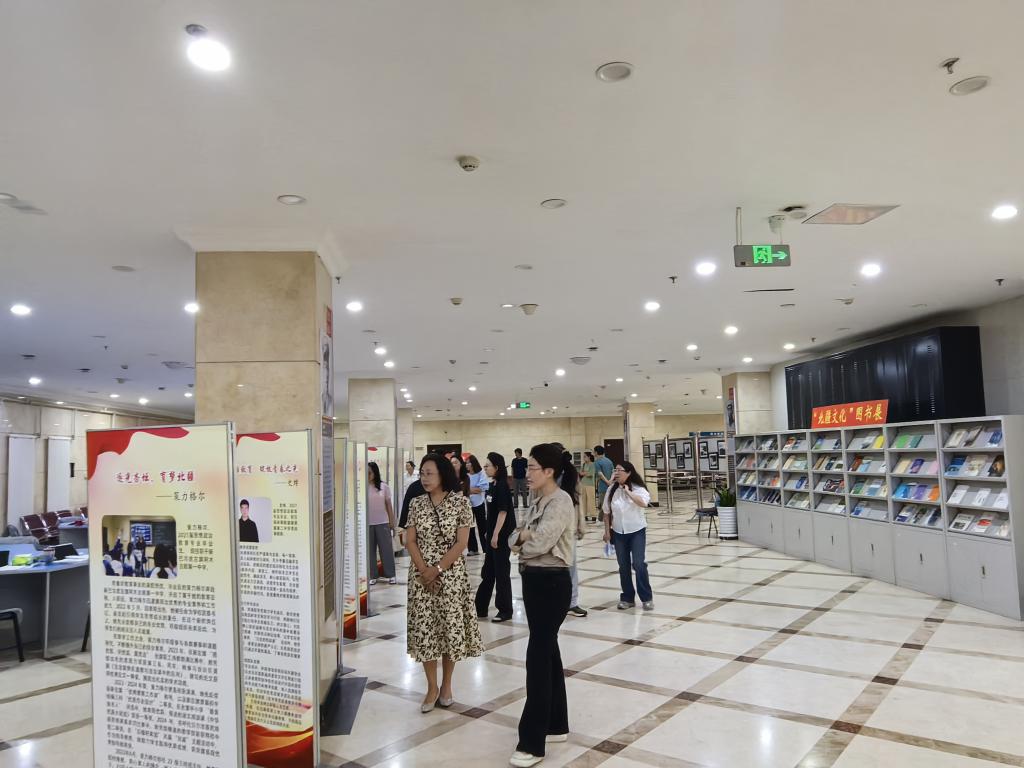党员们依次参观了“北疆文化”图书展区、“籽籽同心 悦享北疆”读书驿站和“强国有我 兴边栋梁——践行教育戍边榜样人物展”。展览生动展现了学校优秀毕业生长期扎根北疆、奉献基层的感人事迹。一幅幅照片、一段段故事、一件件实物,无声地诉说着他们为党育人、为国育才的初心使命和在平凡岗位上做出的不平凡贡献。榜样们“择一事终一生”的执着坚守、“干一行爱一行”的敬业精神、“党叫干啥就干啥”的忠诚担当,深深打动了在场的每一位党员。