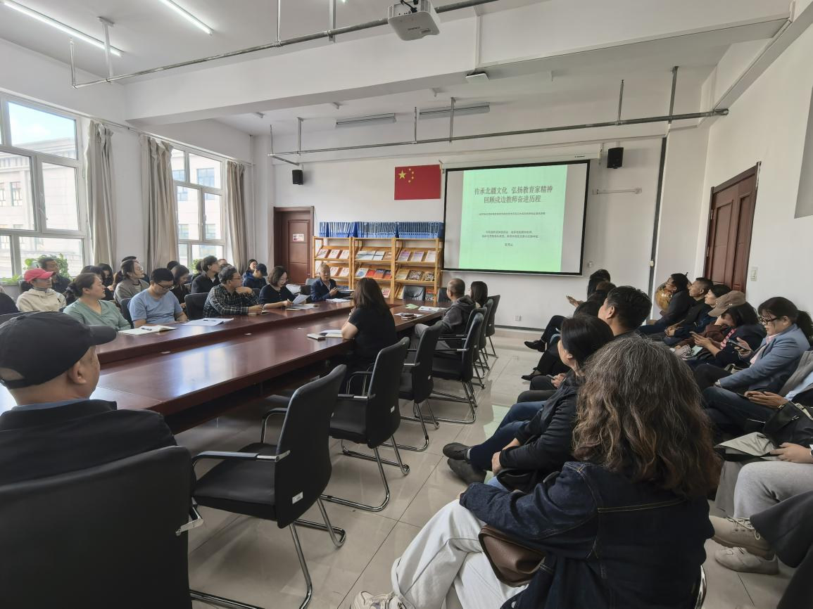 为庆祝第41个教师节,更好的激励教师能够以教育家精神铸魂强师,谱写教育强国建设华章,9月10日下午,pp电子游戏平台官网党总支开展“银龄秉烛传师道,青衿承志铸强国”主题党日,邀请学校退休教师包玉山同志围绕“传承北疆文化,弘扬教育家精神,回顾戍边教师奋进历程”主题作专题讲座,学院全体教职工参加学习。